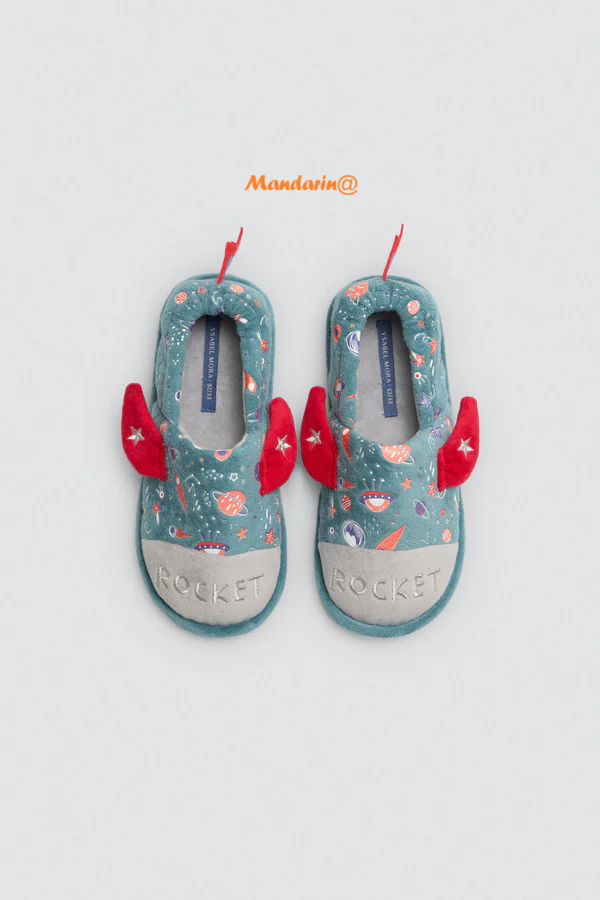 Con un estampado inspirado en el espacio, incluye detalles como una cola de cohete y unas alas. Fabricado en felpa muy suave, este material hace que sean muy calentitas y cómodas.